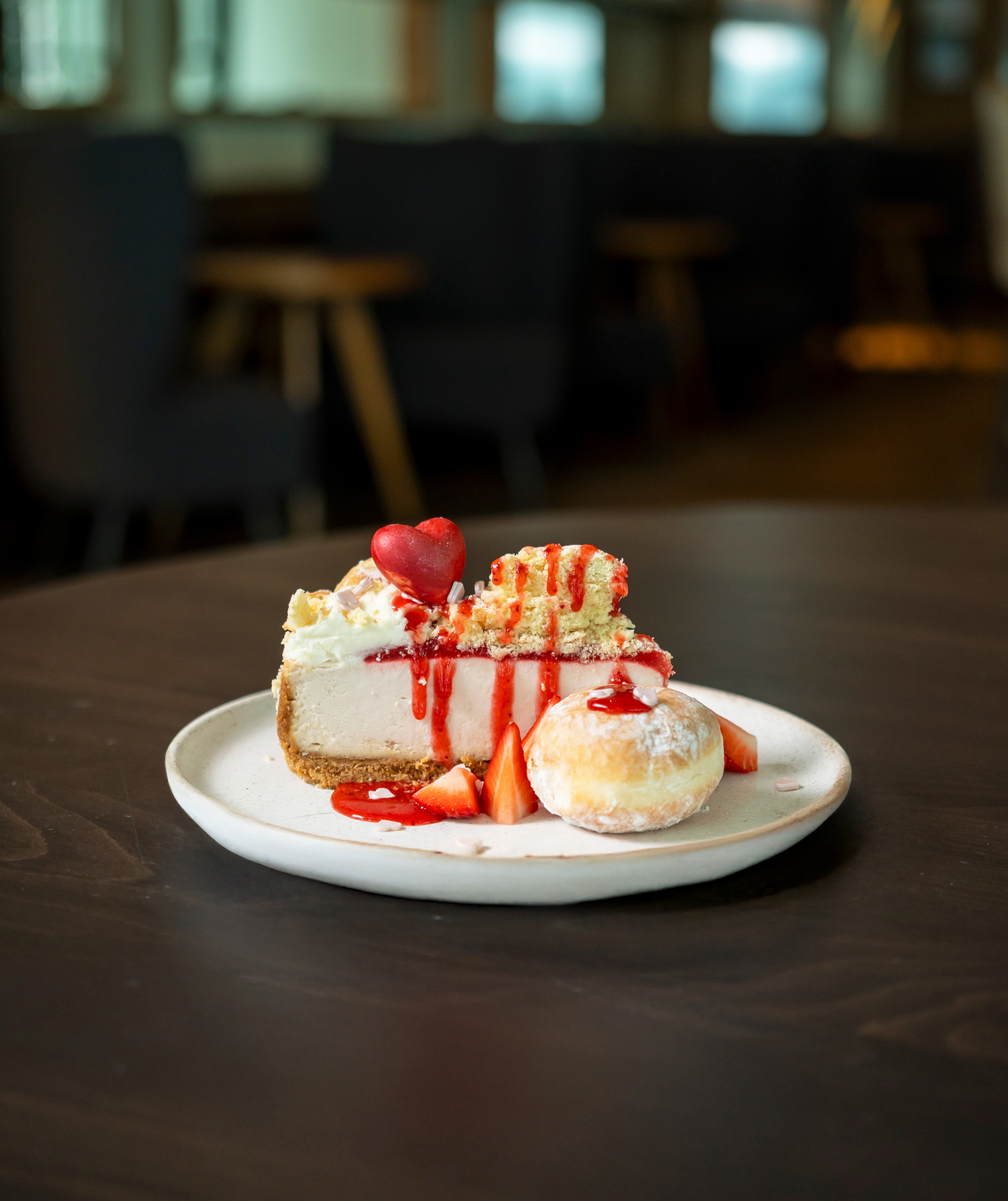 Raspberry Cheesecake – Vanilla Anglaise, Donut Crumble, Fresh Berries, Beignets